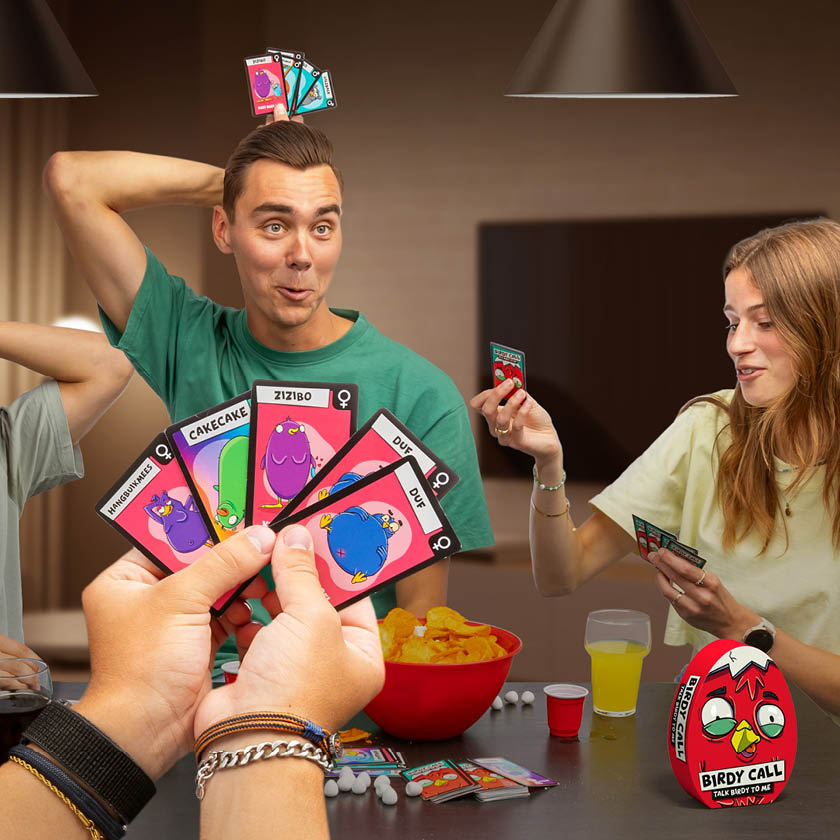 Koko perheen partypelissä etsitään linnuille kumppania! Pelaajat matkivat lintukorttiensa ääniä ja yrittävät mahtavan kakofonian keskellä löytää vastaavan äänen. Varokaa kuitenkin huijarilintuja… Eniten pareja löytänyt voittaa! 3-6 pelaajalle.