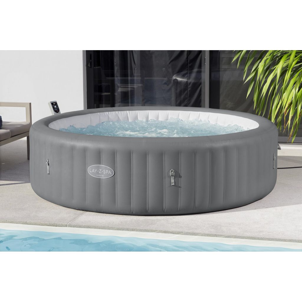 Rentoudu lämpimässä, poreilevassa Lay-Z-Spa® Hawaii Smart AirJet™ -uima-altaassa! Tämä kannettava poreallas lievittää lihasjännitystä ja tukee palautumista liikunnan jälkeen. Patenttia odottava EnergySense®-eristys tekee altaasta jopa 40 % energiatehokkaamman kuin vastaavat ilmatäytteiset altaat. Bestway Connect™ -sovelluksella voit säätää lämpötilan, aktivoida ajastimen, käynnistää suodatusjärjestelmän ja hallita hierontatoimintoa – kaikki helposti puhelimesta. AirJet-järjestelmässä on 140 suutinta, jotka vapauttavat poreita altaan pohjasta ja luovat rauhoittavan tunnelman. MaxHold™-sisärakenteet pitävät ilmanpaineen tasaisena ja tekevät altaasta vakaan ja helposti siirrettävän. Ulkoseinä on valmistettu kolmikerroksisesta Tritech®-materiaalista, joka kestää hyvin puhkeamisia ja vaurioita. Freeze Shield® -teknologia suojaa allasta kylminä kausina pitämällä veden lämpötilan juuri jäätymispisteen yläpuolella. Altaassa on monitoiminen UltraFit™-pumppu, joka hoitaa täytön, lämmityksen ja suodatuksen, ChemConnect®-annostelija veden tasapainon ylläpitoon sekä vahvistettu kansi, joka säilyttää lämmön ja pitää roskat poissa. Turvallisuutta lisää maadoituksen tunnistusjärjestelmä, joka varmistaa oikean sähköliitännän.